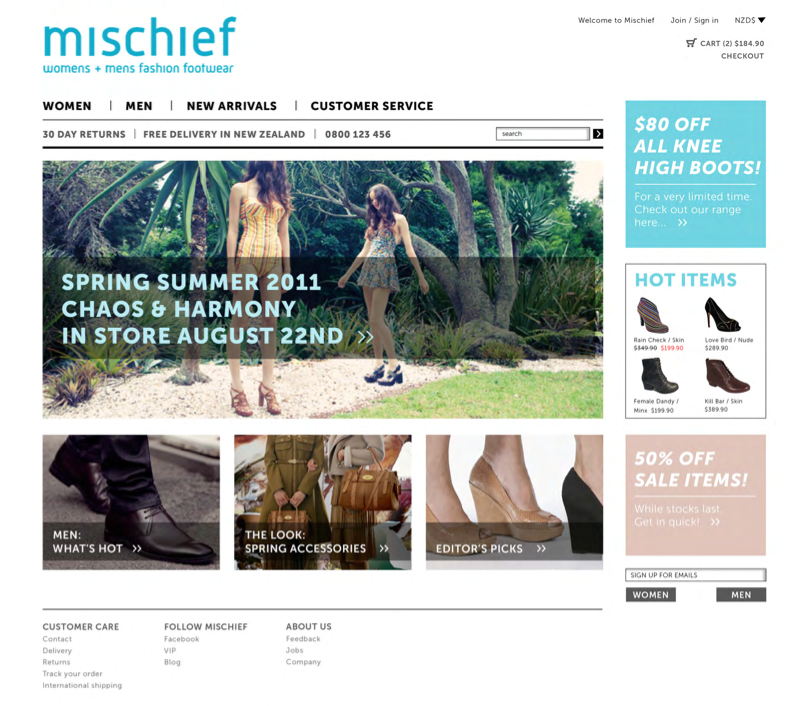 Mischief Shoes online store redesign.